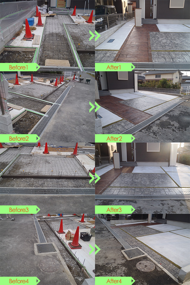 アルスグリーンでは福岡でも先駆けて、スタンプコンクリート・デザインスプレーの導入を進めるとともに従来のインターロッキングブロック施工も万全にご提案いたします。このページでは、スタンプコンクリート・デザインスプレー等の施工事例をご紹介します。